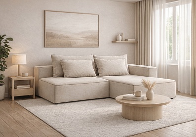 Диван ИТАН угловой с поворотным механизмом Бежевый (Happy 102), Велюр