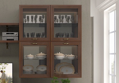 Шкаф настенный Дольче Кашемир серый, Трюфель коричневый
