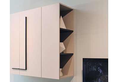 Шкаф Интро навесной с фасадом и открытой нишей Оникс серый, Ярко-серый