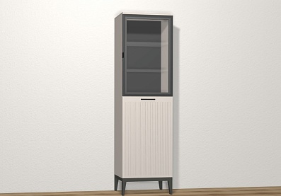 Боковые царги: ЛДСП 2,2 см, передняя панель — МДФ с декоративной фрезеровкой в виде вертикальных полос и окутана плёнкой ПВХ;