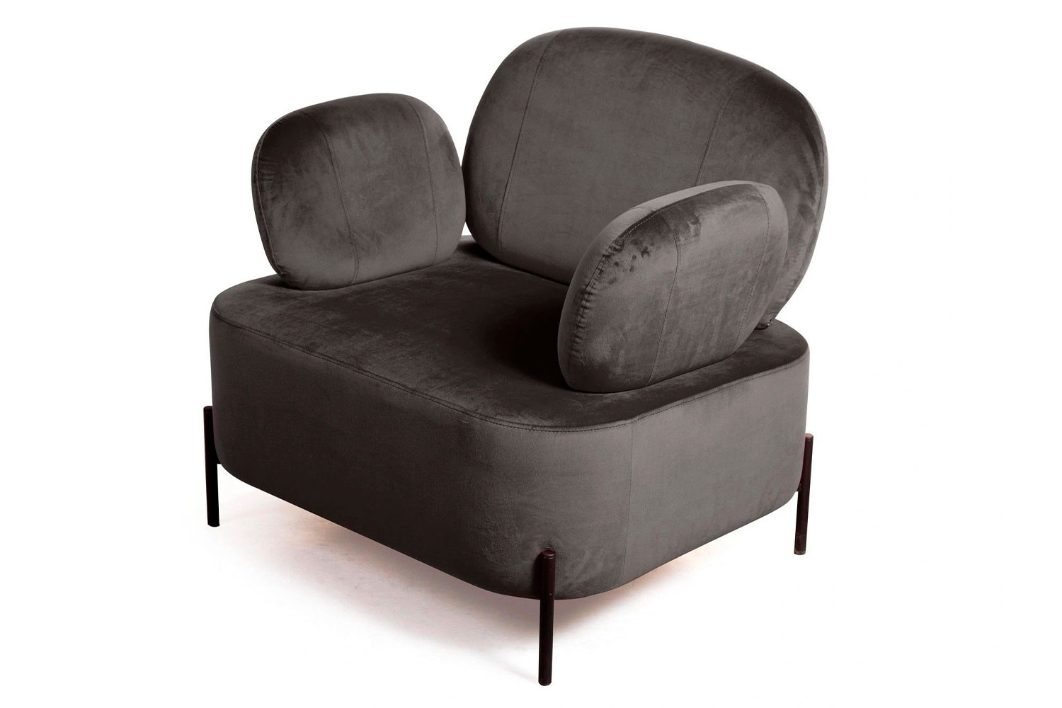 – описание: цвет антрацит, размер 81x86x74 см, материал обивки велюр, стиль современный.