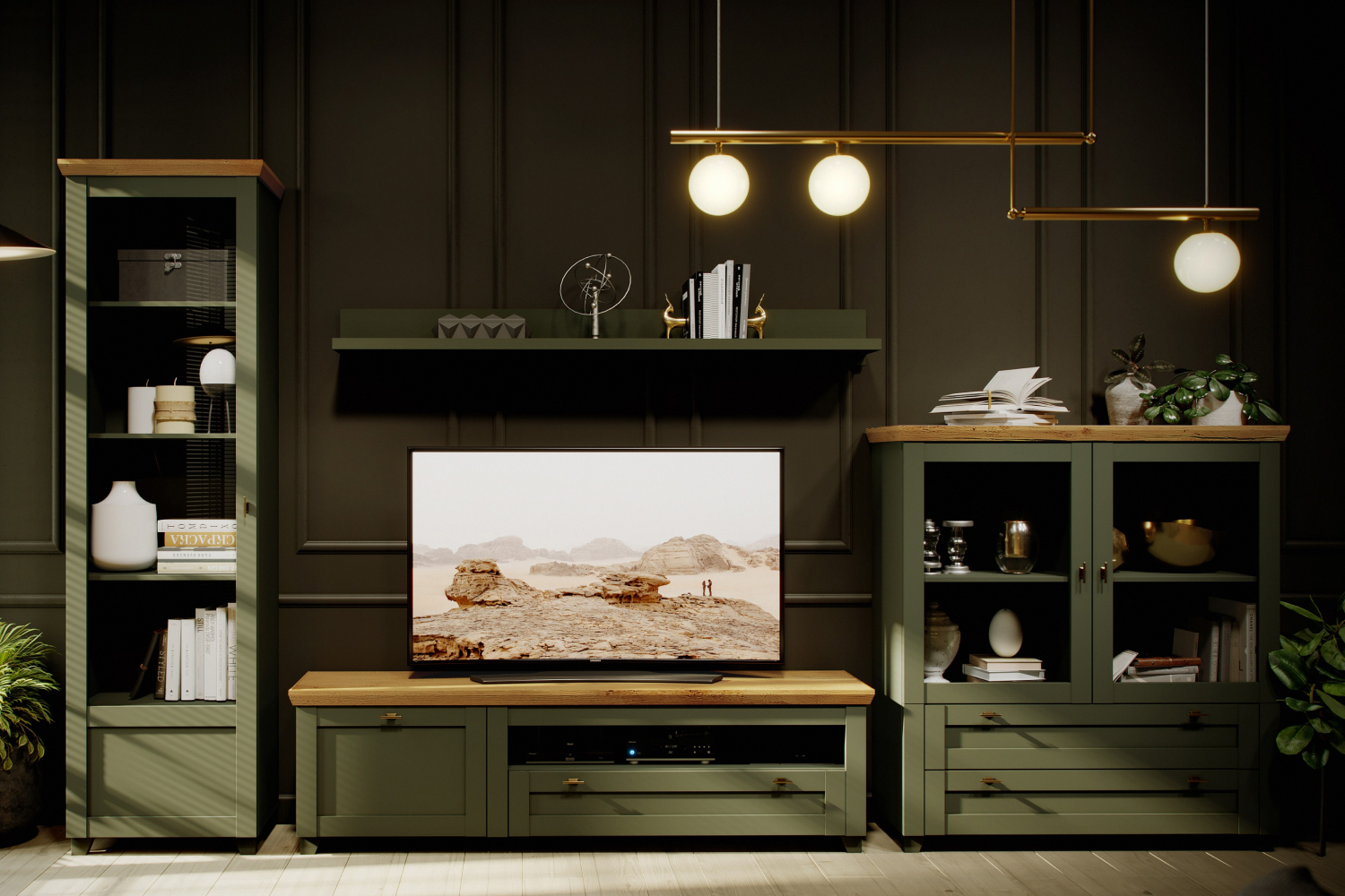 - Шкаф низкий с рамочными фасадами и двумя выдвижными ящиками;
