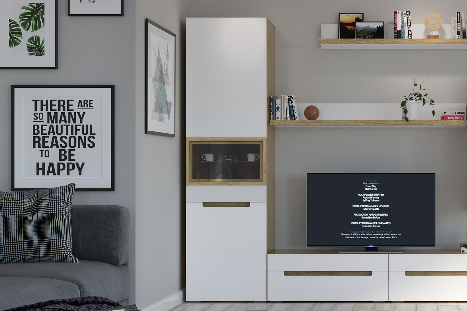 – описание: назначение для гостиной, размер 213.2x60.1x41.6 см, цвет швейцарский вяз, белый, стиль современный, минимализм.