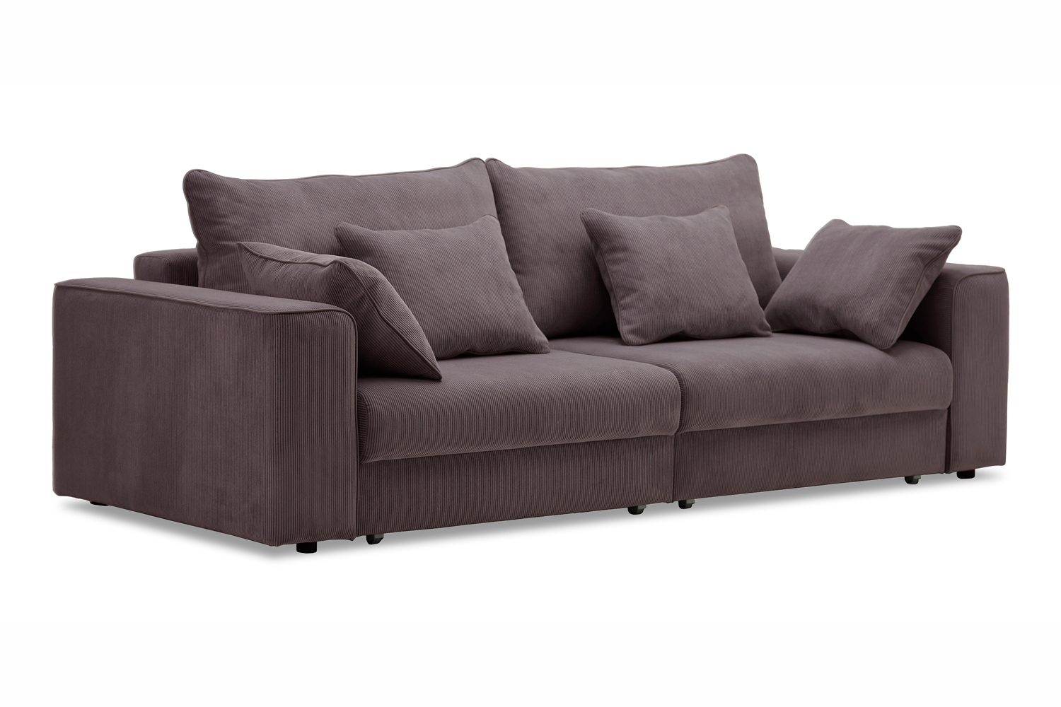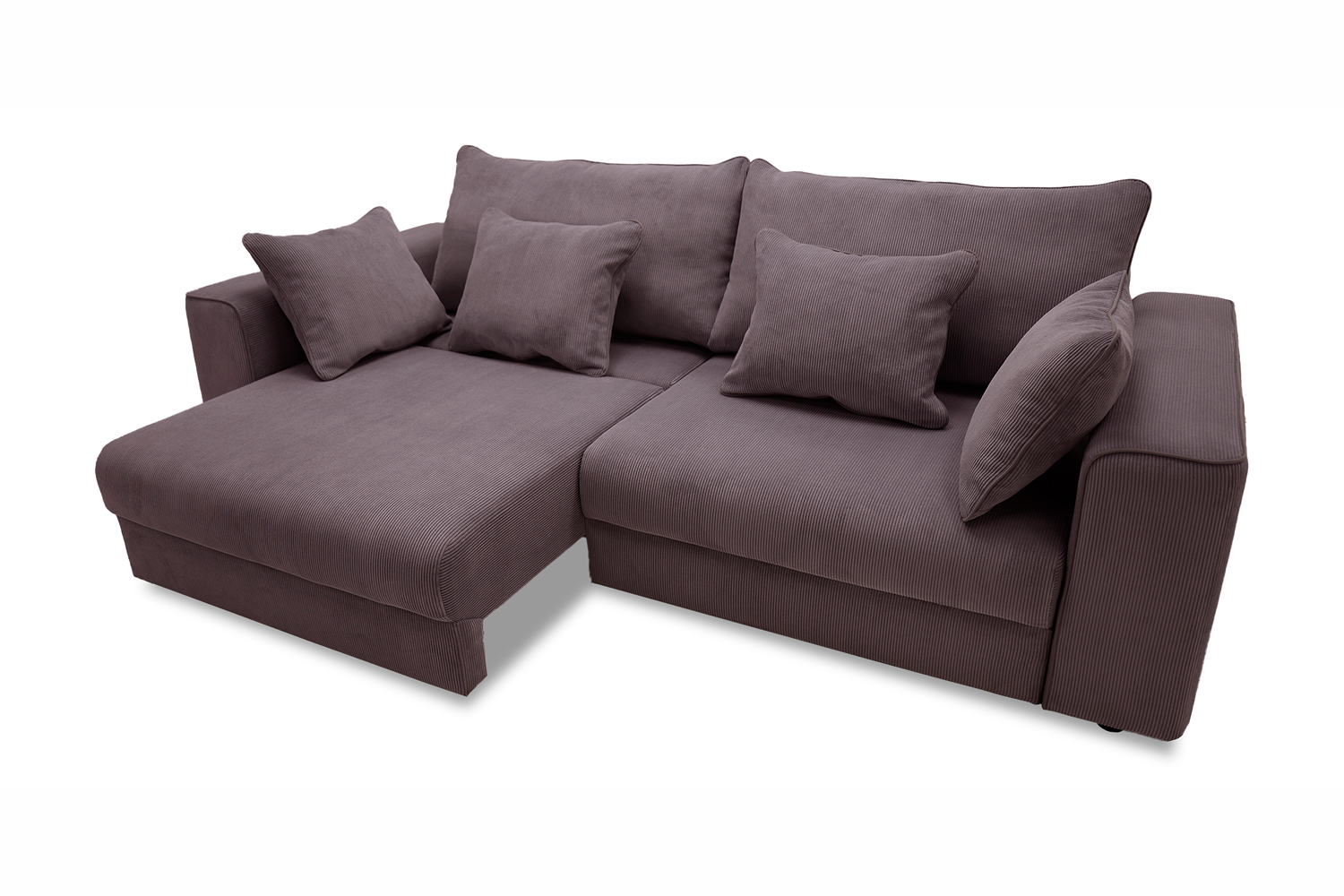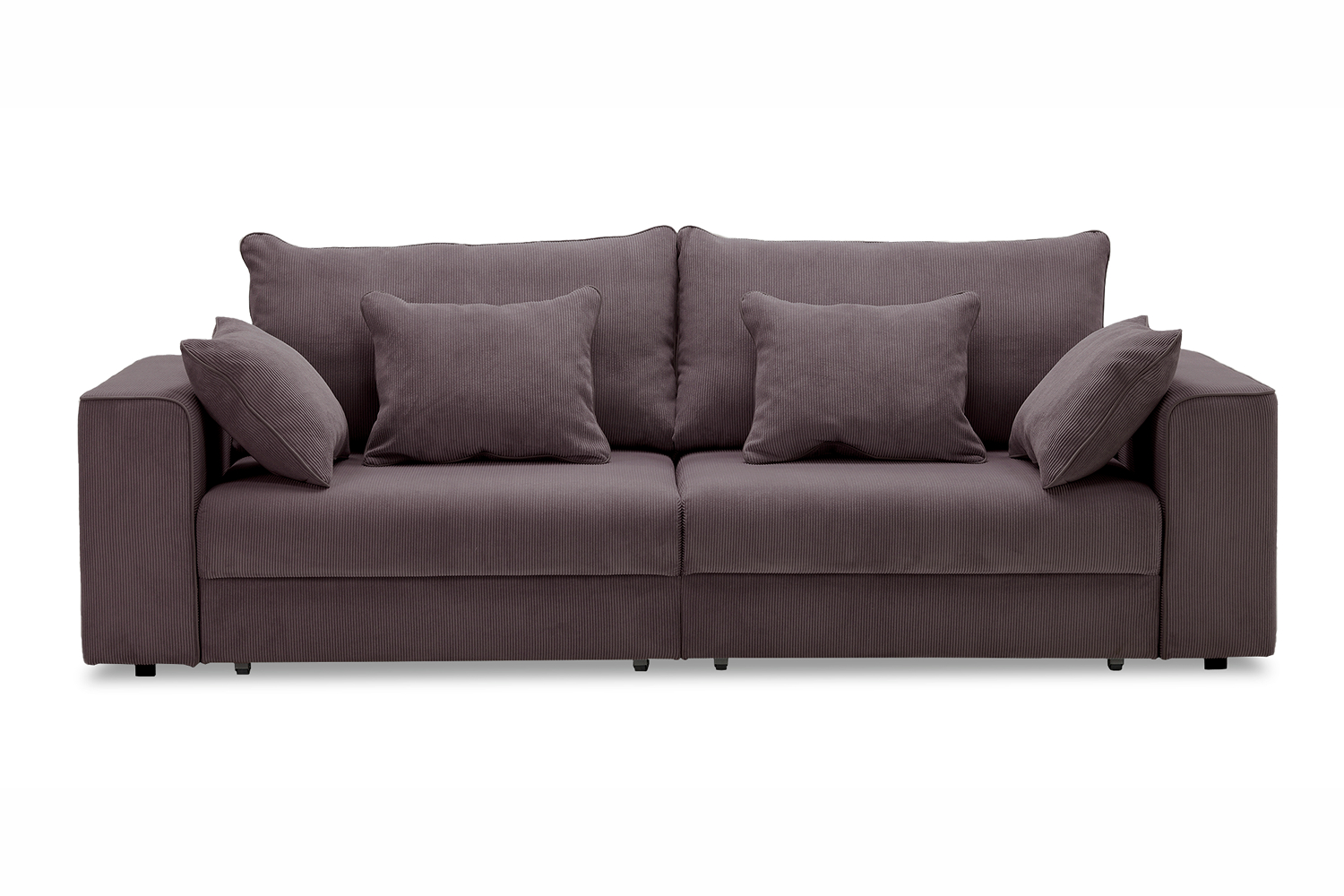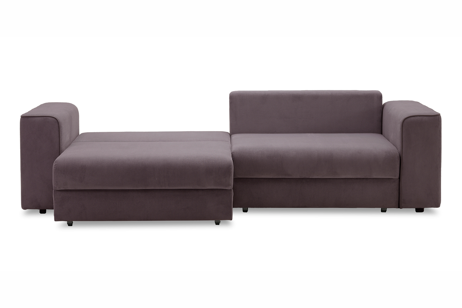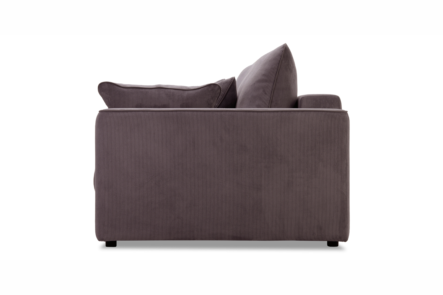 Диван выполнен в современном стиле, который будет гармонично смотреться в любом интерьере. Обивка из велюра c вертикальной текстурой актуального серого оттенка приятна на ощупь и легко чистится.