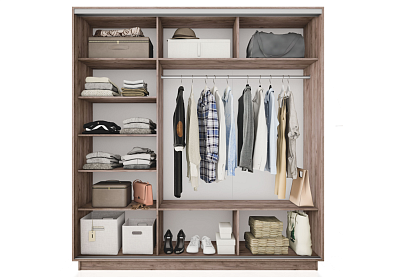 Универсальная перегородка внутри шкафа позволяет менять местами секции: можно расположить секцию со штангой или с полками с любой удобной стороны – справа или слева.